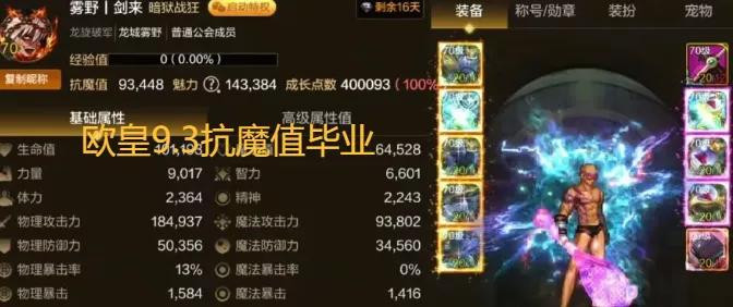 按理来说呢,5件红12+4件红13+红14武器的打造,毕业后起码应该有9.5万以上的抗魔值,而这位杨总只有8.7万抗魔值。